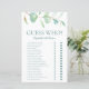 Dieses einfache, minimalistische, moderne Eukalyptus Guess Who? Brautparty Spielblatt ist perfekt für jede Dusche. Dieses lustige und leichte Spiel bringt jede Menge Lachen in jedes Brautparty! Es wird definitiv das Eis brechen und alle reden und lachen lassen. Einfach jedem Gast ein Blatt geben (vergessen Sie nicht die Stifte) und den Spaß gelassen beginnen! Sie werden erstaunt sein, wie viele Menschen die Antworten kennen. Um dieses Brautparty zu Ihrem eigenen zu machen, wählen Sie einfach diese Vorlage personalisieren und geben Sie den Namen der Braut und den Namen des Bräutigams ein.