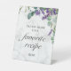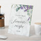 Elegantes Rezeptorschild mit wunderschönen Lavendel-Blume und moderner Typografie auf weißem Marmorboden.