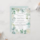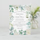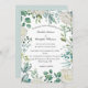 Eine schöne Hochzeitseinladung mit weißen Rosen und Eukalyptus-Blätter.