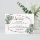 Dies ist eine wunderschöne Hochzeitsdetails-Karte mit Eukalyptus und Rose goldgeometrischen Rahmen-Design. Ein passender Hintergrund mit Eukalyptus-Blätter ist im Lieferumfang enthalten.