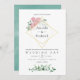 Trendy geometrische Eukalyptusgrün und rot rosa Rosen Hochzeitseinladung mit goldenem geometrischem Rahmen und Minze Aquarell waschen umgekehrt.