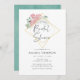 Trendy geometrische Eukalyptusgrün und rot rosa Rosen Braudusche Einladungen mit goldenem geometrischem Rahmen und Minze Wasserfarbe Waschrückwärts.