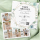 Lade die Lieben zu einer herzzerwärmenden Babydusche mit einer Einladung ein, die rustikalen Charme und Eleganz ausstrahlt. Die Vorderseite zeigt den Namen der Mutter-zu-sein in Kalligraphie, gepaart mit raffiniertem Serif-Schriftart für ein schön ausgewogenes Aussehen. Umgeben von einem zarten, eukalyptus-grünen Design auf einem geometrischen Rahmen, spiegelt diese Einladung das Wesen eines rustikalen Grünthemas wider. Ein QR-Code ermöglicht den schnellen Zugriff auf UAWG- und Registrierungsdaten und macht sie für die Gäste bequem. Auf der Rückseite, eine Collage von 8 Fotos teilt besondere Erinnerungen und Meilensteine, die einen wahren Sake, der diese fröhliche Reise feiert. Ideal für eine grüne und rustikale Babydusche.