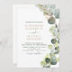 Feiern Sie Ihren besonderen Tag in natürlicher Eleganz mit unserer Eukalyptus Rustic Botanical Greenery Wedding Einladung. Inmitten der ruhigen Schönheit der Natur verströmt diese Einladung rustikalen Charme und botanischen Anmut und schafft so den perfekten Ton für Ihre Hochzeitsfeier. Mit viel Liebe zum Detail gestaltet, bietet die Einladung zarte Eukalyptus-Blätter und Akzente im Grünen und schafft so eine faszinierende Kulisse für Ihre Veranstaltungsdetails. Das rustikale Design wird durch eine ausgeklügelte Typografie ergänzt, was zu einer zeitlosen und modernen Einladung führt. Unsere hochqualitative Einladung, die die Maße misst, sorgt für Beständigkeit und Eleganz und macht sie zu einem hochgeschätzten Sake für Sie und Ihre Gäste. Ob Sie eine intime Gartenzeremonie planen oder eine große rustikale Affäre planen, diese Einladung lädt Liebende ein, in der Freude Ihrer Gewerkschaft inmitten der Natur zu erleben. Genießen Sie den zauberhaften Reiz von Eukalyptus und botanischer Vegetation mit unserer rustikalen Botanischen Grünen Hochzeitsfeier und beginnen Sie Ihre Reise in Stil und Eleganz für immer.