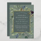Die schicke botanische Fledermausmitzvah-Einladung besticht durch üppig grüne botanische Blätter und Eukalyptusfolien in Aquarellfarbe mit Goldfolie. Personalisieren Sie Ihre Zeremonie und Ihre Party Details in modernen Schriften auf einem Ton auf Ton moosgrünen Hintergrund.