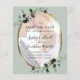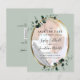 Eukalyptus Sage Gold Metallic Foto Hochzeit Sparen Sie das Datum.. Unser erschwinglicher botanischer Salbei verfügt Save the Date über einen goldmetallischen ovalen Rahmen, der mit smaragdfarbenen Eukalyptus-Blätter geschmückt ist und einen natürlichen Look für Ihr Foto und den überlagerten Ankündigungstext schafft. Der Salver der Karte enthält Ihre Hochzeitswebsite-Informationen und eine QR-Code-grafische Vorlage, die Sie durch Ihre eigene Code-Grafik ersetzen können. Alle Beispieltexte auf beiden Seiten der Karte lassen sich einfach mit eigenen Angaben auf der Personalisierungsvorlage überarbeiten.