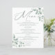 Weiche, schöne Eukalyptus-Blätter unterstreichen dieses einfache Hochzeitsinspektionsdesign. Sehen Sie sich das Thema Eukalyptus Sage Watercolor an, um mehr Hochzeitskunst und Zubehör zu erhalten.
