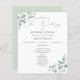 Weiche, schöne Eukalyptus-Blätter unterstreichen dieses einfache Hochzeitsinspektionsdesign. Sehen Sie sich das Thema Eukalyptus Sage Watercolor an, um mehr Hochzeitskunst und Zubehör zu erhalten.