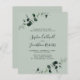 Budget Eukalyptus Greenery Sage QR Code Elegante Script Typografie Hochzeitsempfang Einladung... Unsere erschwingliche botanische Hochzeitsempfehlung mit eleganten Eukalyptuszweigen mit Salbei und smaragdfarbenen Blätter schafft einen natürlichen Rahmen für den Einladungstext im Inneren. Der Salver der Karte enthält Ihre Hochzeitswebsite-URL und ein Beispiel QR-Code-Grafik, die Sie einfach durch Ihre eigenen Informationen ersetzen können, während Sie den Text überarbeiten. Alle Beispieltexte können mit eigenen Angaben auf der Personalisierungsvorlage leicht überarbeitet werden. Diese moderne Empfang-Einladung wurde so konzipiert, dass sie sowohl elegant als auch zeitgemäß gerettet ist und speziell für geschäftige Bräute entwickelt wurde.