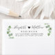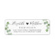 Elegante, moderne Aquarellfarben Eukalyptus Hand Lettered Script Wedding Rücksendeadressen-Aufkleber. Mit einer wunderschönen handgeschriebenen Schriftzeiche und dem Vornamen des Bräutigams mit schwarzem Swash-Schwanz-Schriftart, kleiner Herzform zwischen den Namen, grüner Eukalyptus-Aquarell auf weißem Hintergrund. Einfach mit Ihren Namen und Rücksendeadresse-Infos personalisieren.