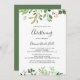 Diese Eukalyptus-Einladung ist eine einfache, braune, blumengeschmückte Taufe, die sich perfekt für eine moderne Taufe oder Taufe eignet. Das Design zeichnet sich durch kunstvoll handbemalte eukalyptus-grüne Blätter aus, die in geometrische Formen angeordnet sind und die natürliche Schönheit inspiriere.