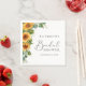 Rustikale Servietten aus Brautparty mit Aquarellbouquets von fröhlichen Sonnenblumenfloralen und Eukalyptusgrün, eine schicke Kalligraphie-Schrift und elegante Serifentypografie.