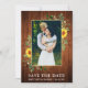 Moderne Eukalyptus Grünpflanzen Sonnenblumen Rahmen Save the Date Foto Verlobung Announcement Card - Goldrahmen, rustikales Land Holz
