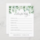 Lassen Sie Ihre Duschgäste diese wunderbaren Wünsche für Babykarten an Ihrer Babydusche ausfüllen. Eine Illustration von Grün und Eukalyptus. Personalisieren Sie die mit dem Mommy-to-be-Namen und dem Duschdatum.