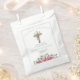 Eine elegante Erinnerungs-Samentüte mit schöner salbeigrüner Eukalyptus-Darstellung auf einem Holzkreuz. Personalisieren Sie sie mit dem Namen Ihres geliebten Menschen, dem Datum und der Pflanzenart. Das zarte botanische Design aus Rosen und Eukalyptus auf einem einfachen weißen Hintergrund schafft ein zeitloses und herzliches Erinnerungsstück. Eine schöne Möglichkeit, sich bei Gästen zu bedanken und eine lebendige Erinnerung an die Trauerfeier zu teilen.