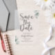 Diese schicke Eukalyptus Einzigartigkeit Moderne Elegante Minimalistische Save the Date Einladung ist perfekt für diejenigen, die Einfachheit mit einer Touch von Eleganz schätzen. Diese Einladung mit eleganter Typografie und einem sauberen, minimalistischen Boho-Design ist ideal für moderne Paare, die ein zeitloses Aussehen suchen. Die weiße Kulisse verleiht dem minimalistischen Design eine zentrale Bühne und schafft ein ruhiges und stilvolles Ambiente. Ob Sie eine Hochzeit planen oder ein anderes besonderes Ereignis planen, diese Einladung strahlt modernes Chic-Ambiente aus und bewahrt dabei eine ruhige, raffinierte Ästhetik. Ideal für diejenigen, die schlichte Eleganz mit einer Touch zeitgenössischen Flairs Liebe.