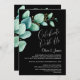 Laden Sie Ihre Freunde und Lieben zu Ihrem Empfang nach der Hochzeit mit diesem Aquarell grünen Eukalyptus Blätter schwarze Einladung zu feiern Ihre jüngste Ehe.