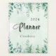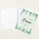 Grüner, wasserfarbener Hintergrund. Dekoriert mit Eukalyptusgrün und Waldfarnen. Fügen Sie ein Jahr und Ihren Namen hinzu.