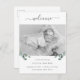 Diese einfache und elegante Ankündigung für die Geburt eines Kindes auf der Postkarte zeigt minimalistische grüne Aquarellfarben Eukalyptus-Blätter auf einem weißen Hintergrund mit handgeschriebenem Skript. Fügen Sie Ihr Lieblings-Foto Ihres Neugeborenen, um diesen botanischen Look zu vervollständigen.