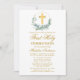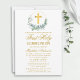 Eleganter Wasserfarbe Eukalyptus Verlasse Wreath Erste Heilige Kommunion Einladung. Gold Cross.