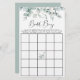 Elegantes Brautbingo-Duschenspiel mit grünen Aquarellen in Weiß-Eukalyptusgrün und "Bridal Bingo" in einer stilvollen Schrift. Personalisieren Sie die Spielanleitung und fügen Sie den Namen und das Duschdatum der Braut auf der Rückseite hinzu.
