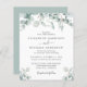 Elegante, preisgünstige Einladung zur Hochzeit mit Aquarellen aus Weiß-Eukalyptusgrün, stilvollem Drehbuch und weicher grauer Typografie.