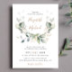 Elegante, alles-in-one-botanische Hochzeitsinspektion mit Aquarellen aus Salbei-grünem Eukalyptus-Grün, Lorbeer-Blätter und Goldakzenten, mit moderner, weicher grauer Typografie und Ihren Namen in einem stilvollen Goldskript. Auf der anderen Seite laden Sie Ihr Lieblings-Verlobung-Foto hoch und geben Sie Ihre Website-Adresse ein, um einen QR-Code für Ihre Gäste zu erstellen, um online zu scannen und zusätzliche Hochzeitsdetails wie Unterkünfte zu erhalten.