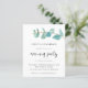 Blue Eukalyptus Wedding Abend Party Einladung. Ein Preis SMALLER 4,5" x 5,6" Alternative. Erhältlich in einem SEMI GLOSS 110lb CARD STOCK, welches die Standardoption ist (empfohlen für Einladungen), ODER einem SATIN FINISH 80lb THINNER PAPER STOCK (ideal für Gehäuse). Umschläge sind optional und etwas größer als die Kartengröße. An der Spitze steht ein eleganter Zweig aquamariner blauer Eukalyptus, gefolgt von dem Text, den Sie leicht personalisieren können. Auf der Rückseite befindet sich eine koordinierende Farbe, die Sie ändern können, wenn Sie es über die weitere Option anpassen möchten.