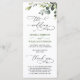 Elegantes Eukalyptus Hochzeitsprogramm für Wasserfarben. Verwenden Sie die Vorlagenfelder, um Ihre Zeremonie- und Brautparty-Informationen hinzuzufügen, und klicken Sie dann auf "Anpassen", um Elemente bei Bedarf neu zu positionieren. Brauchen Sie Hilfe? Kontaktieren Sie mich über den Link "Diesen Designer Gefragt" auf dieser Seite.