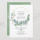 Wald eucalyptus grün Hochzeitseinladung mit goldenem geometrischem Rahmen, angepasst an Ihre Eventspezifikationen.
