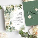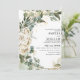 Modernes elegantes, schwarz-eukalyptus floralistisches Winterhochzeitdesign mit Rose in Weiß mit Grün und Eukalyptus, einfache und klassische Winterhochzeit-Einladung. Hervorragend für moderne klassische Hochzeit, Vintage Hochzeit und formelle Hochzeit. Entdecken Sie die vollständige Auflistung für passende Elemente. Klicken Sie auf die Schaltfläche Bearbeiten, um dieses Design anzupassen. Entdecken Sie die vollwertige Schwarz-Weiß-Hochzeitskunst.