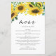 Fügen Sie dem Tisch Ihres Events einen rustikalen Blumenakzent hinzu, indem Sie diese Sonnenblumenkarte verwenden. Es zeigt Aquarellbilder von Sonnenblumen und Eukalyptus-Blätter. Personalisieren Sie diese durch Hinzufügen von Namen und Menüdetails. Brautpartys, Babyduschen, Geburtstage und ähnliche Party sind die perfekte Wahl für und Hochzeiten im Herbst.