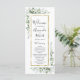 Ein schönes goldgrünes Eukalyptus Hochzeitsprogramm. Einfach mit Ihren Daten personalisieren. Ideal für Hochzeiten im Grün oder im Garten.