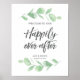 Willkommen zu Ihrer Hochzeit mit diesem grünen eucalyptus Hochzeitszeichen "Herzlich Willkommen in unserem glücklichen Nachher", das Sie auf einen Stand gestalten oder klammern können. Personalisieren Sie den Text für Ihre Hochzeit. Auch passende Einladungen und Papierartikel sind erhältlich. © Mini Moi Prini