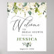 Herzlich willkommen bei Ihrer Hochzeit mit dem Brautparty "Weiße Rosen-Blumengrün" Willkommenspender mit üppiger botanischer Vegetation und weißen Blume, mit "Herzlich willkommen zu unserem glücklichen aller Zeiten", Ihren Namen und Hochzeitsdatum in einer schicken Mischung aus modernen Häusern und handgeschriebenen Kalligraphiemustern.