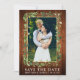 Moderne Eukalyptus Grünrahmen Save the Date Foto Verlobung Announcement Card - Rustikales Landholz, Goldrahmen