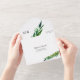 Eukalyptus Zweig in grünen Tönen alle in einer Hochzeitseinladung. Ein schönes Design für Ihre Hochzeit mit einem Zweig von Eukalyptus mit Blätter. Die RSVP-Karte kann gelöst werden.