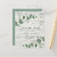 Eukalyptus Grünpflanzen Blätter moderne minimale Garten Party Wedding speichern das Datum Einladungen. Einfaches, zeitgenössisches botanisches Design. Salingrün und Weiß Holzfußboden.