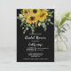 Wunderschöne gelbe Sonnenblumen sind von Eukalyptus-Blätter umgeben und sind Set vor einem schwarzen Hintergrund, der sie Pop macht. Das Gesamtbild ist stilvoll, elegant und elegant. Ideal für Sommerveranstaltungen, Frühjahr, Winter und Herbst Brautparty. Sie können die Vorlagen löschen oder verschieben und die Größe und den Stil der Schriftart ändern, falls gewünscht.