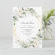 Grünes Hochzeitstil mit Eukalyptusblättern, Blume mit weißem Aquarell und Goldrahmen. Text und Farben können bearbeitet werden.