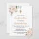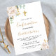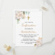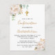 Weiße, mit Eukalyptusgrün dekorierte Untergründe, eine weiße Perle, goldene Blätter. Personalisieren und einen Namen und Zeremonie Details. Schwarze und goldfarbene Buchstaben.