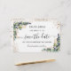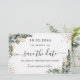 Ein trendiger Save the Date für eine 40. Geburtstagsfeier (oder ein beliebiges Alter). Ein stilvoller weißer Hintergrund mit Eukalyptus, Grünpflanzen und goldenem Blattwerk und Imitaten goldenen Glitzer Staub. Personalisieren und fügen Sie Datum, Namen und Text hinzu. . Der Text: Save the Date wird mit einem großen angesagten, handgeschriebenen Stilskript mit Swashes geschrieben.