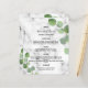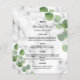 Personalisieren und fügen Sie Ihre Namen, Datum und das Hochzeitsmenü. Marmorsteine als Hintergrund, mit Eukalyptusgrün dekoriert, mit Sprigs.