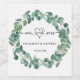 Weißer Hintergrund, schwarzer Text. Dekoriert mit einem grünen Eukalyptuskranz. Herr und Frau. Personalisieren Sie Ihre Namen und das Datum und fügen Sie sie hinzu.
