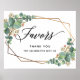 Das ist ein wunderschönes Hochzeitszeichen-Produkt für Favoriten mit Skripttext und Eukalyptus-Goldrahmen