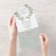 Einfach und elegant ist diese schlanke grüne Aquarellfarbe eucalyptus All-in-One Hochzeitseinladung. Passen Sie sich mit Ihren eigenen Informationen an.