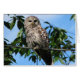 Abgehaltene Eule auf Draht außerhalb meines Küchenfensters in der Birken-Bucht, Washington auf einem reizenden Sommermorgen war eine herrliche Überraschung.