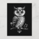 Eule auf einem blühenden Ast - schwarz weiß Postkarte