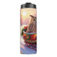 Eule auf einem Schlitten während der Ferien Thermosbecher