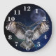 Fantastische wild lebende Tiere. Die Eule des großen Graus oder die Eule des großen Graus ist eine sehr große Eule, dokumentiert als die größten Spezies der Welt der Eule durch Länge. Eule im Flug, dunkler Himmel mit Sternen und blauer Mond.